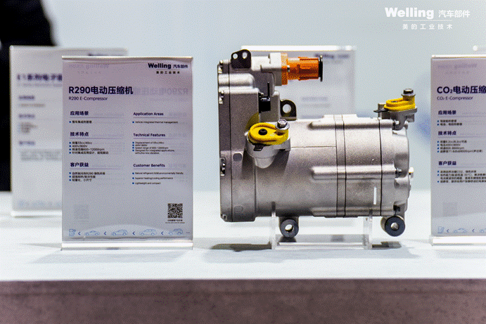 在新能源汽车的技术与应用中,热管理系统扮演着至关重要的角色,它不仅影响电池续航能力,还决定了驾乘舒适性与安全性。本次车展,威灵汽车部件以环保、高效、轻量化为核心,展示了一系列创新产品,包括采用R290与CO₂环保媒介的压缩机,以及800V和400V电动压缩机、热管理集成模组、电子水泵、电子膨胀阀、电磁阀、水阀等传统媒介产品,为整车热管理提供全面支持。