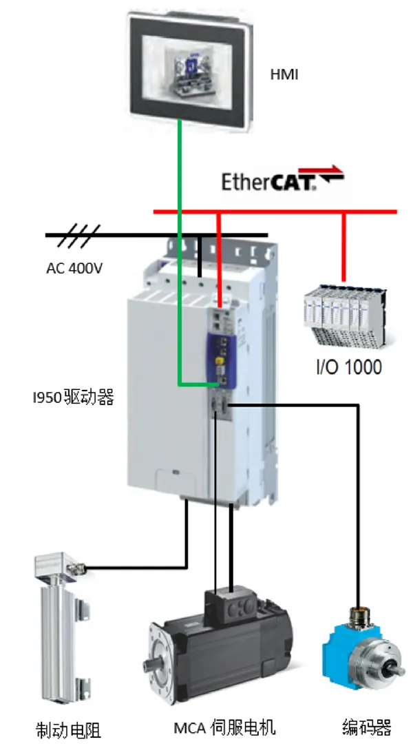伦茨的解决方案包括MCA/MQA异步伺服电机和i950/9400智能伺服驱动器。