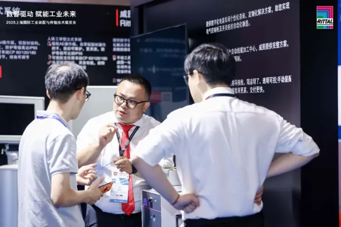 展位上,威图工作人员热情的接待每一位参观人员,耐心的为客户进行讲解,与客户洽谈细节,介绍了威图涵盖从设计到售后的所有的业务流程,为客户降低成本的同时,最大程度上提高生产效率,满足客户智能制造发展需求,助力客户更快实现智能化、绿色化转型。