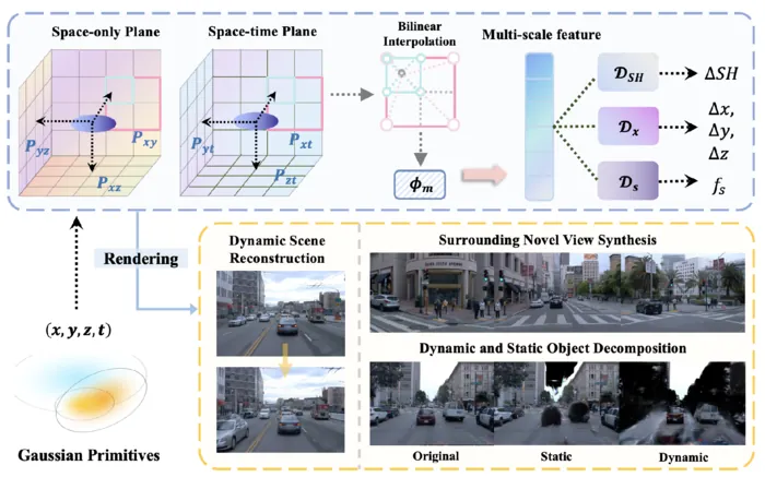 • S3Gaussian: Self-Supervised Street Gaussians for Autonomous Driving ([2405.20323] $\textit{S}^3$Gaussian: Self-Supervised Street Gaussians for Autonomous Driving)