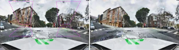 aiSim新构建的GGSR通用高斯泼溅渲染器优化了重建场景下光线追踪传感器的渲染效果,增强广角镜头渲染下的一致性,减少伪影的产生,实现高保真度的3DGS重建场景兼容。