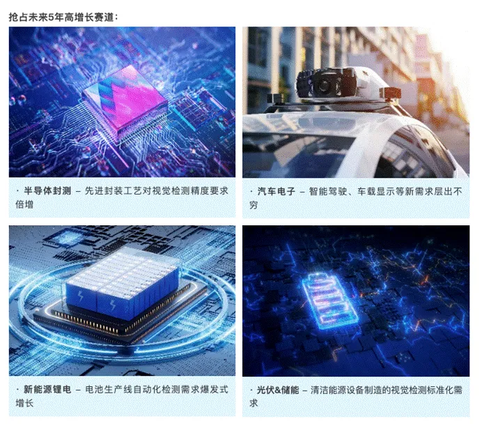 • 需求井喷:新能源、汽车电子、半导体等高增长领域急需视觉解决方案